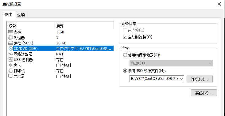 点击“浏览”,找到之前下载好的centos7的镜像放入到里面即可