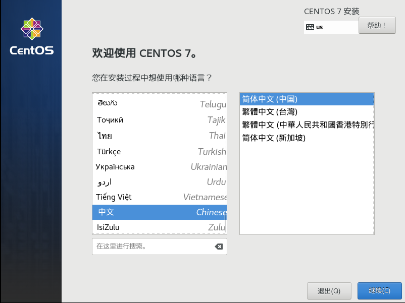 开机后设置语言为中文点击继续