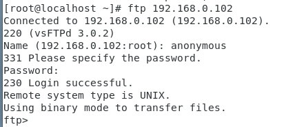 [root@localhost ~]#ftp://192.168.0.102再依次输入匿名用户名称,anonymous,密码为空,直接回车