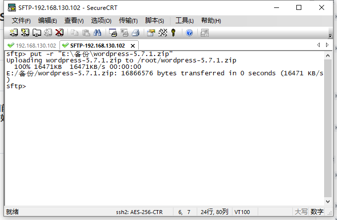 使用工具winscp或者secureCRT将wordpress传输到机器里面。